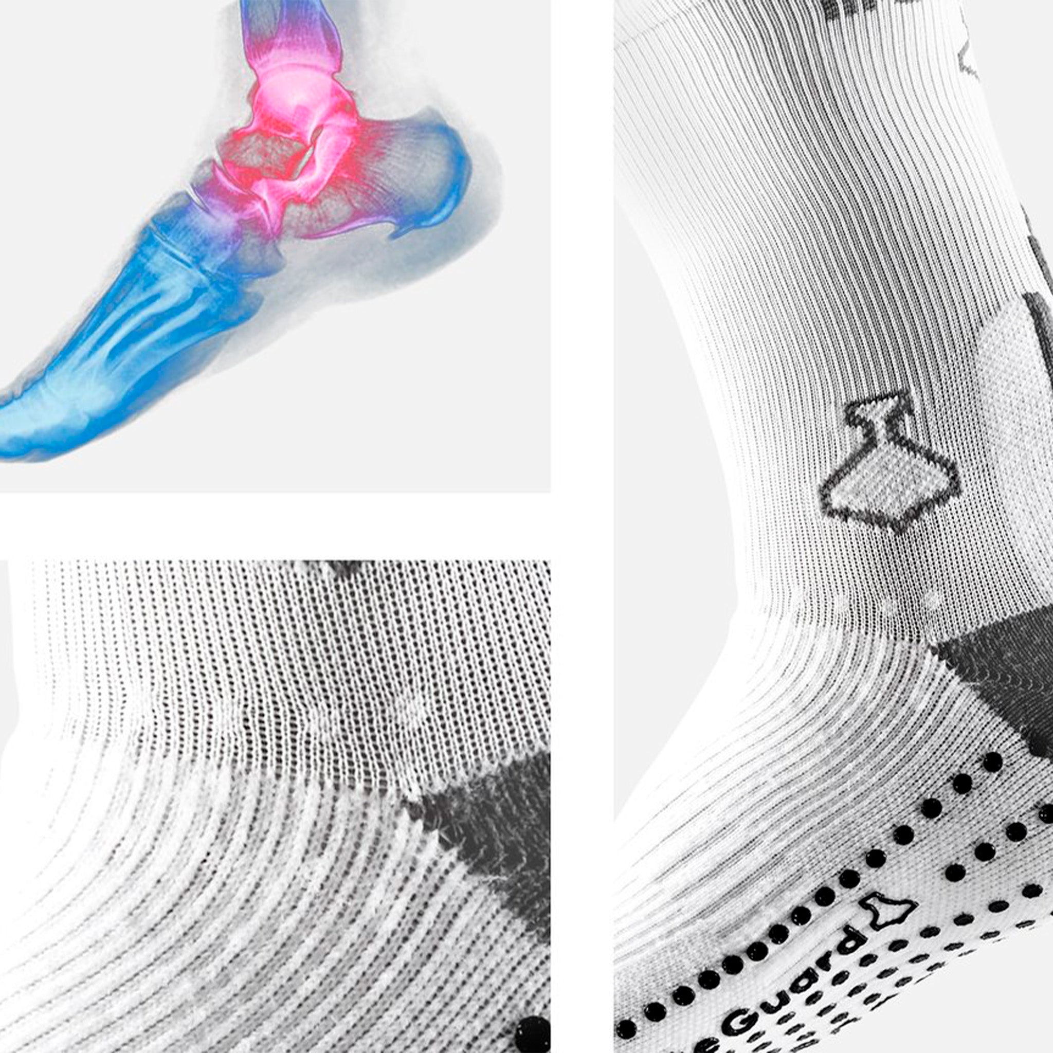 Holen Sie sich maximale Unterstützung um Knöchel und Achillessehne mit unseren mittelhohen PRO-TECH-Kompressionssocken. Die strategisch platzierten Silikonnoppen sorgen für einen stabilen Halt im Schuh und helfen Blasen zu vermeiden. Sie eignet sich besonders gut für Sportarten mit anspruchsvollen Richtungswechseln.