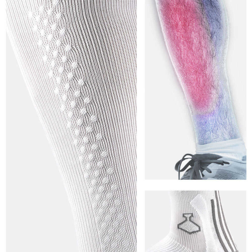 Die Laufsocke ist eine Kompressionssocke, die die Blutzirkulation im Unterschenkel erhöht. Dadurch können Ermüdungserscheinungen und Beschwerden während und nach anstrengender körperlicher Betätigung verringert werden.